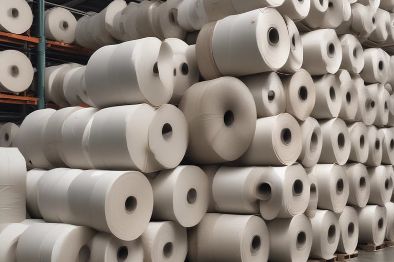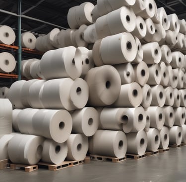 Tecidos, cabos, lonas ou papel kraft em bobinas que exigem fixação adequada.